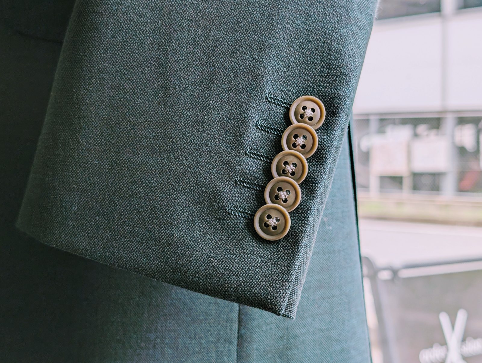 それにしても、グリーンのスーツとグレーの釦はイイ組み合わせですねー。