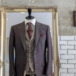 ブラウン系のスーツとベスト、すっごく微妙にトーン違いの組み合わせ。