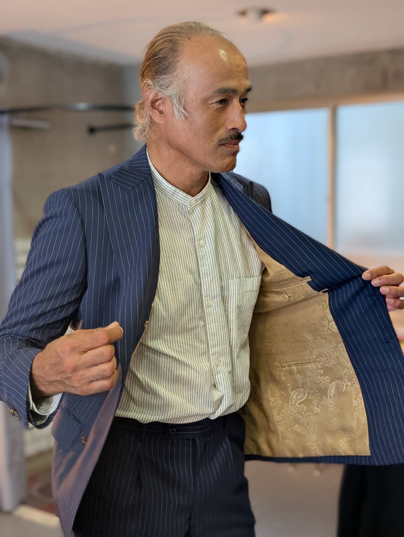 インポート生地でも何でもない、ごくごく一般的なビジネススーツの生地でも化けてしまいますね。